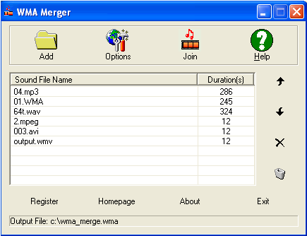 WMA格納ソフトWMA格納ソフトとは いくつかのWMAファイルをひとつ大きなWMAファイルにまとめて格納できるものである。このプログラム自身がWMAファイルに対し、圧縮を行っていないので、品質喪失は不可能である。というわけで、プログラム迅速に稼動し、ファイルのドラッグ・アンド・ドロップをサポートする。コーデックそしてビットレートが同じWMAファイルであればこそお互いにつながり、接続可能である、